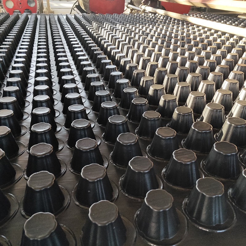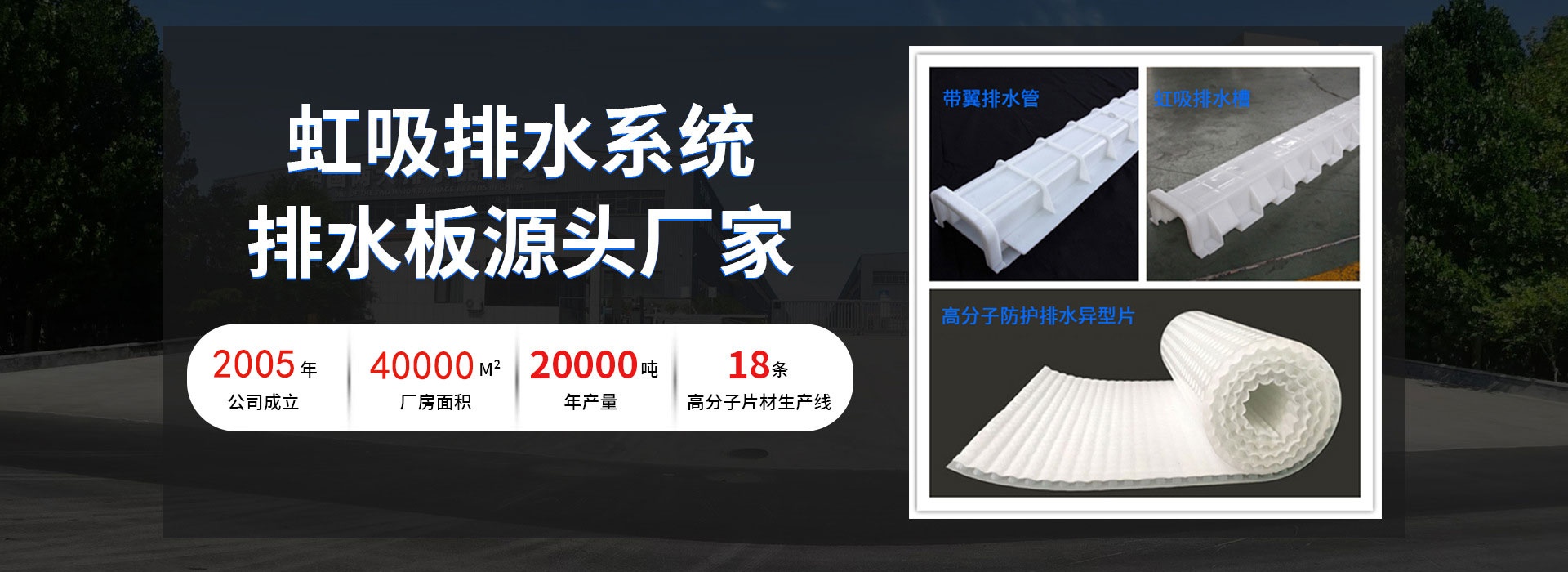 防排水保護(hù)板獨(dú)有的凹凸中空立筋結(jié)構(gòu),可以有效快速的導(dǎo)出地下防水層積水,地下滲出的水順著地下架空層排水板的空間將水引流至四周盲溝,再通過(guò)盲溝后引流至集水坑。從而大大的減少甚至消除了防水層的靜水壓,通過(guò)這種主動(dòng)導(dǎo)水的原理達(dá)到主動(dòng)防水的效果。有效的保護(hù)構(gòu)筑物和防水層,并且抵抗土壤中的各種酸堿和植物的根刺還有防潮降噪的功能。對(duì)土建施工周期及構(gòu)筑物的正常使用和壽命具有重要的作用。